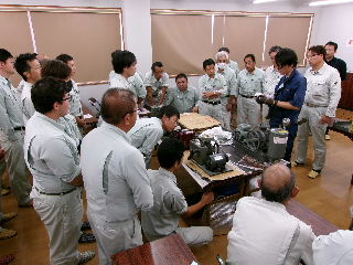 数分の座学の後は、講師から1時間以上かけて実機のメンテナンスと分解・組立をご披露頂き、その後は3機の実機を若手管理士を中心に、実際にメンテナンスと分解・組立を行う事で貴重な体験を得ることが出来ました。