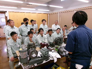 以前は一般家庭の浄化槽にも設置されていた同社のロータリーブロワですが、近年は施設などの大型浄化槽に設置されている事が多く、古くからご活躍頂いている浄化槽管理士の皆さんしかメンテナンス経験を持つ方々がいなくなりつつありますので、今回の研修会を実施しました。